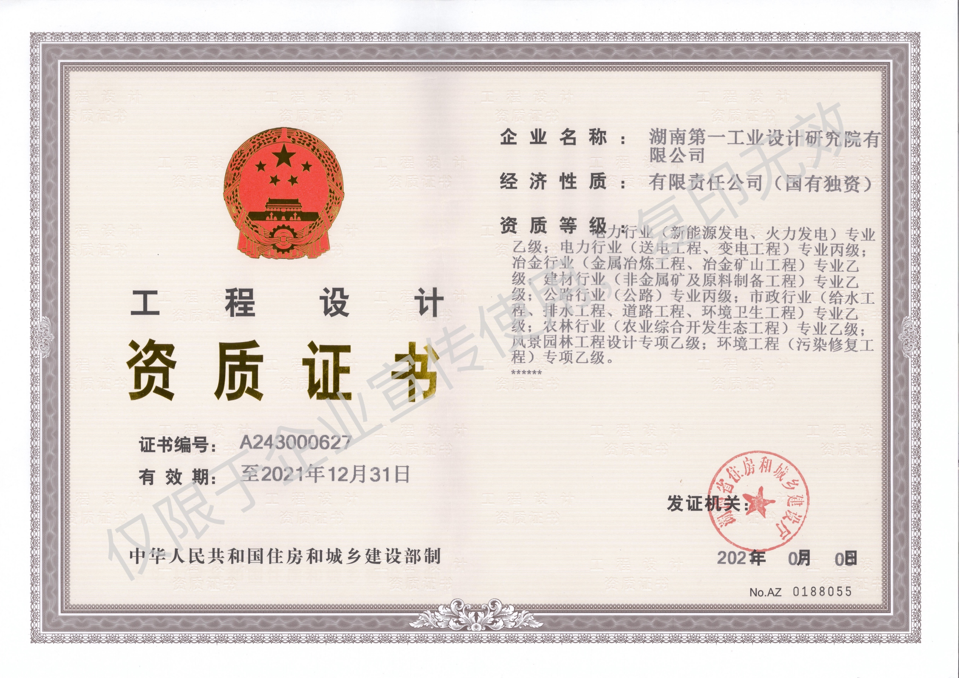 工程設計資質證書