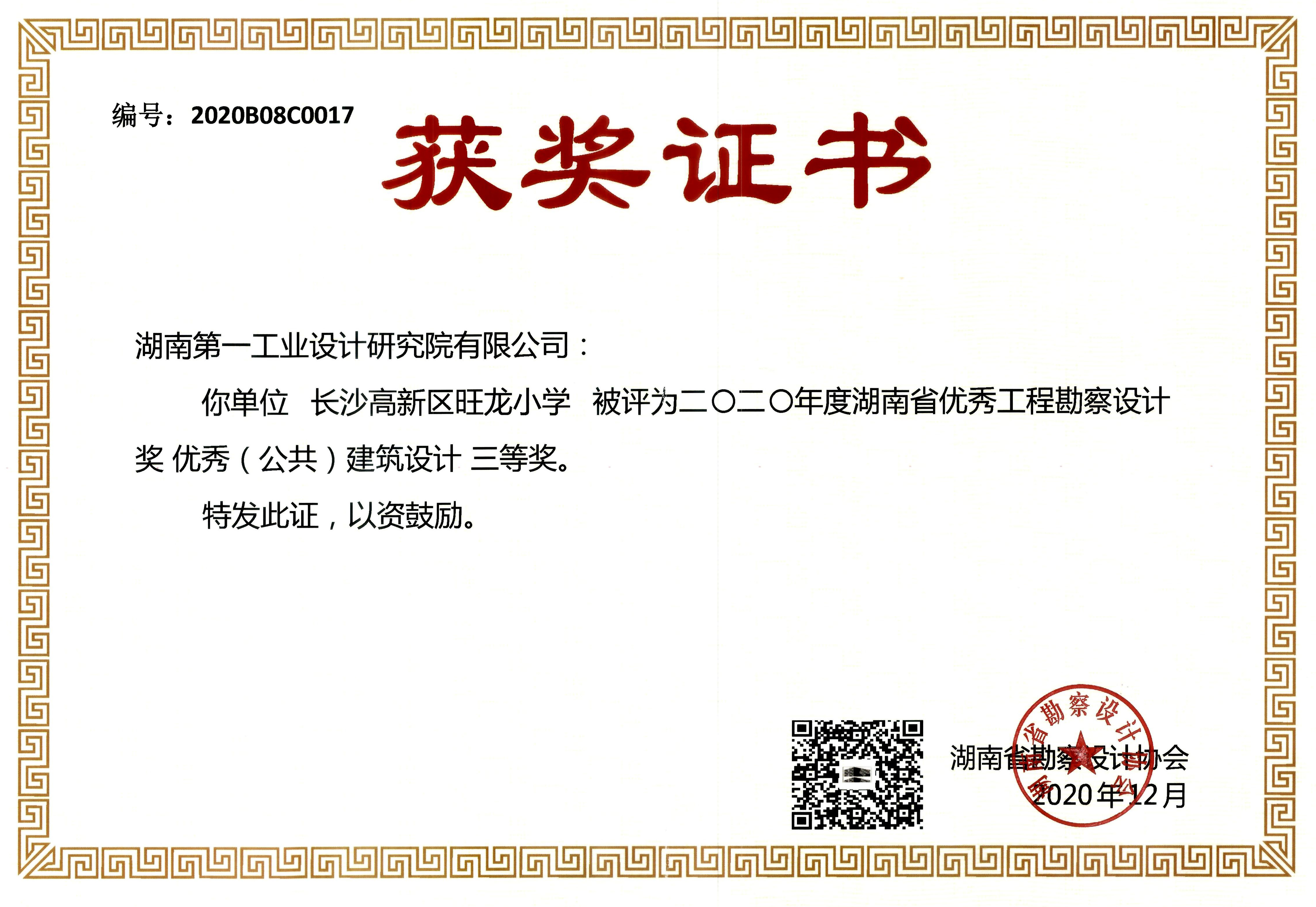 湖南省優秀設計表揚金獎(1984)